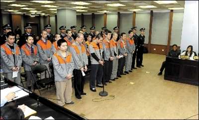 昨天上午11點,原北京市保安服務總公司懷柔分公司第7經營部直屬大隊稽查隊隊長張永安和崔各莊遠洋集團建筑工地保安隊隊長馬斌斌、副隊長冀軍良及葉新峰等13名普通保安員等16名被告,被帶入法庭。