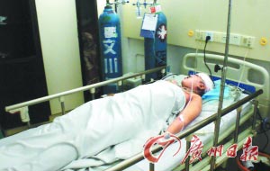 重傷的雷某躺在醫院接受治療。記者陳卓達攝