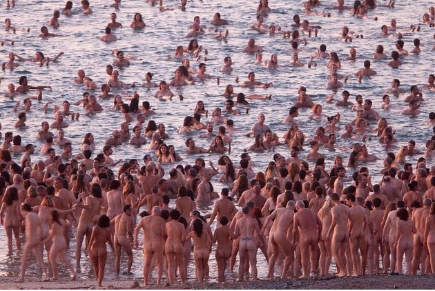 美藝術家組織1200人死海邊拍攝集體裸照(圖)