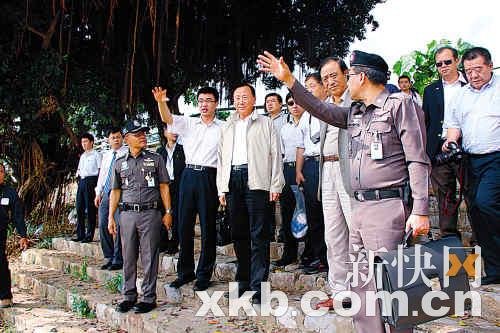 ■26日,中國公安代表團查看湄公河襲擊事件案發(fā)現(xiàn)場,聽取泰國清盛縣警方對案情的介紹。新華社發(fā)