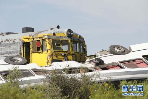 阿根廷西部圣路易斯省2日發生一起火車撞公交車事故,造成至少8人死亡、約40人受傷。圖為事故現場。 新華社/美洲通訊社