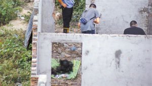 事發(fā)現(xiàn)場位于大浪龍峰三路元芬小學對面一個山坡上,最上面有一家已經(jīng)廢棄的店鋪,墻上寫著大大的“拆”字。