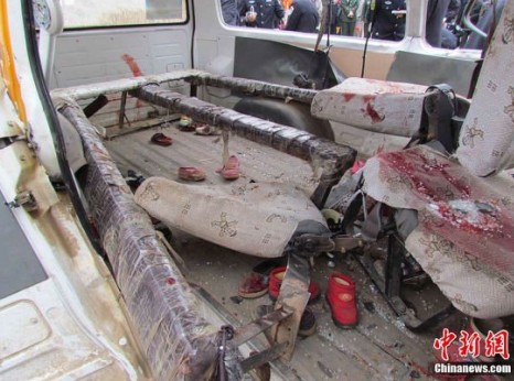 16日9時40分許,甘肅正寧縣榆林子鎮“小博士”幼兒園校車在接到幼兒后,行駛至該鎮西街道班門口時,與一輛陜西籍大翻斗運煤車相撞。截至記者發稿時止,事故共造成20人遇難,18人重傷,26人輕傷。遇難者中,包括司機和女教師兩名成人,其他死傷者均為幼兒。甘芬 攝