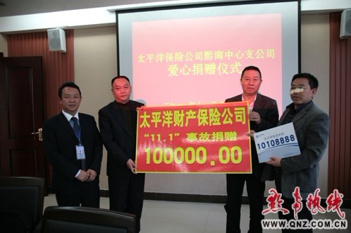 太平洋保險(xiǎn)公司黔南中心支公司愛(ài)心捐贈(zèng)10萬(wàn)元