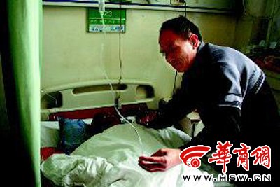 昨日上午,銅川礦務局中心醫院,李老躺在神經外科病房里正在輸液,老人頭部、眼部烏黑,有明顯的外傷,看上去非常疲憊。他閉著眼嘴里不停地念叨:“我要回老家去,睡平板架子床,那里沒有人敢打我。”51歲的女兒李女士看著父親的樣子,忍不住流下眼淚。