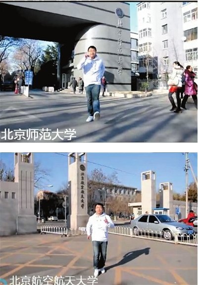 在“穿越北京”的視頻中,肖劍一共出現在了40多所高校門口,跨越了多個城區。兄弟倆在北京待了好幾天才拍完。