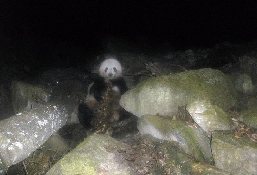 四川綿陽平武縣首次拍到野生大熊貓吃牛羚尸體