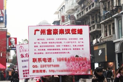 據武漢晨報消息 (記者滕翔昊)昨天,武漢一家婚介公司在江漢路打出招牌稱,一位身家5000萬的廣州富商想尋找一位湖北妹子為伴。征婚廣告一出就吸引了大量市民圍觀,當時就有30多名年輕女子動心,她們紛紛記下聯系方式,但也有市民認為這是在“鬧眼子”。