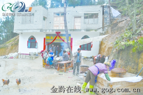 昨天下午4時(shí)許,記者趕到鎮(zhèn)寧自治縣江龍鎮(zhèn)丙英壩村的李樹仁家。一棟剛修的兩層樓房的大門口,系了一條繞門的喜慶紅布,大門兩側(cè),是兩幅內(nèi)容為“百年好合”的結(jié)婚對(duì)聯(lián)。
