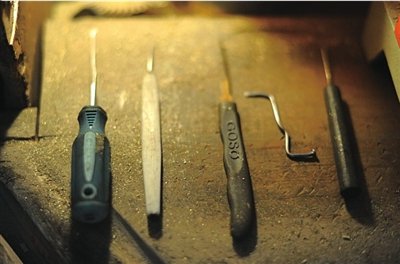 “練的手都發軟了”。小孫說,任何鎖的結構都大同小異,都靠樣式略有不同的別子和撥子開啟,每天八九個小時的練習,讓他偶爾感到搓火,因為手感不行,工具之間的配合不好,一個月下來,一把鎖都沒打開。
