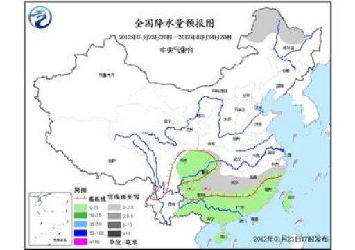 中新網1月23日電 中央氣象臺23日下午5時發布每日天氣提示,預報稱全國大部寒冷,雨雪留戀南方。