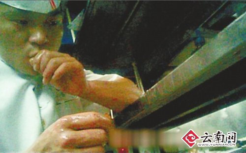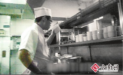 上午11點左右,晚報記者獲準進入廚房看到,一些醒目的提示語映入眼簾:“注意細節 追求完美”,“三NO”:一、不接受不合格產品;二、不生產不合格產品;三、不傳送不合格產品”。而且,對于制作食物、如何傳送菜品、衛生方面都作了細致規定。遺憾的是,從曝光事件中可以看出,這些規定并沒有完全落到實處。