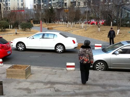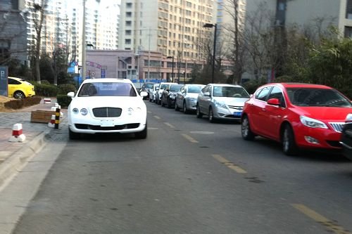 嶗山某小區(qū)擁有40多個(gè)樓座,早高峰車(chē)流量非常大,小區(qū)內(nèi)實(shí)行單向行車(chē),路東邊為停車(chē)位,路西為行車(chē)道。8點(diǎn)30分許,正是車(chē)流量最大的時(shí)候,一輛沒(méi)有掛牌的白色賓利轎車(chē)大方地停在了行車(chē)道上,由于車(chē)體寬大(寬度達(dá)到了1.9米),給其他車(chē)輛留下的通行空間非常有限。