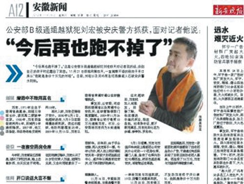 劉宏2010年在安慶落網(wǎng)時(shí)曾感嘆:“今后再也跑不掉了”。