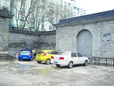 昨天上午,記者來到南京市白下區長白街與文昌巷交叉口的李鴻章祠堂。推開兩扇大鐵門之后,記者發現,偌大的一個院子內停滿了汽車,儼然已成為停車場。祠堂大殿門口掛著兩塊牌子:中國書畫研究會、中國古陶瓷研究會。門口兩側掛著李鴻章生前親書的一副對聯,但是漆皮已經大面積脫落,有些字已經難以辨認。因為門上鐵將軍把門,記者未能進入大殿內部。整個祠堂保留比較完整的只有這座大殿,以及對面的照壁。