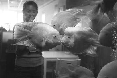不專心游泳、吃食,卻整天嘴對嘴觸碰對方,顯示出無限親昵。這是近一年來每天發(fā)生在市民鄧先生公司魚缸里的一幕。鄧先生在市內(nèi)經(jīng)營一家旅行社。平時喜歡養(yǎng)魚,在公司的接待室里安置了一個大魚缸,購買了二三十條“金剛鸚鵡”,供來往的客人觀賞。