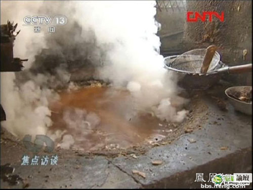 惡心!腐敗動(dòng)物內(nèi)臟煉地溝油(圖)