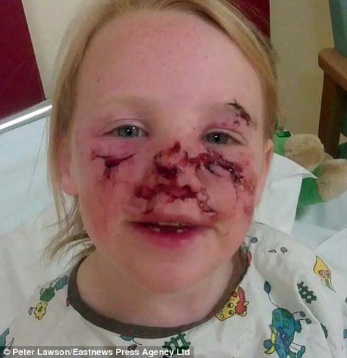 該女孩遭鄰家寵物犬襲擊,造成臉上多處受傷。