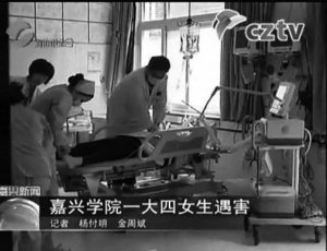 “被刺的是躺著中槍的”。據知情者說,行刺的女生中午時分,找到事發的寢室,她要找另一個女生,但要找的人不在,后來與被刺的女生不知為何相互爭了幾句,行刺的女生就突然從包里掏出一把水果刀刺了過去……