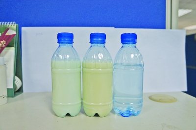 那么,用了豆漿香精,是不是像店主和網上所說的那樣,加點水就成為一杯鮮豆漿呢?記者對此進行了實驗。
