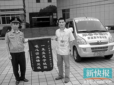 羅永正向彭永強(qiáng)警官贈送錦旗