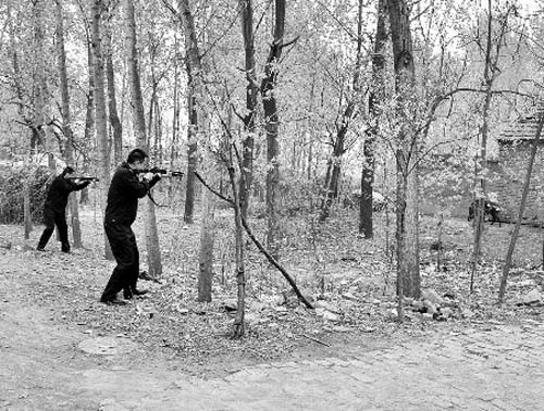 永城市公安局特警8名隊員荷槍實彈趕到現場后,120急救車將傷勢嚴重的受傷群眾拉往醫院救治,特警隊員則按照預先部署,與派出所民警一起,分為疏解小組、圍堵小組和捕殺小組,立即展開對野豬的“圍剿”。