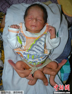 巴基斯坦男嬰患遺傳疾病 有6條腿腹部長出4肢