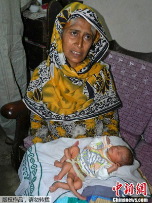 近日,巴基斯坦蘇庫爾市一名嬰兒的出生令其父母甚至醫生都大吃一驚。這名嬰兒出生時竟有6條腿,除了兩條健全的雙腿外,他的腹部長出了4肢。嬰兒的父親目前向政府和慈善機構尋求幫助!