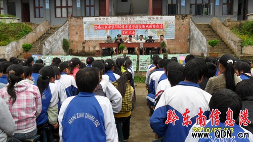 本港訊 (姚茂發(fā) 攝影報道)為了貫徹落實開展校園安全大檢查有關(guān)文件精神和全國綜治維穩(wěn)工作電視電話會議的要求部署,5月18日,尚寨鄉(xiāng)結(jié)合校園安全大檢查專項行動,組織精干力量在到學(xué)校開展法制、安全、國防知識進校園宣傳教課活動。