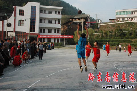 本港訊 (特約記者 陸書明 攝影報道)近日,黎平縣侗族琵琶歌之鄉的尚重鎮,獲得國家體育總局表彰為全國體育先進單位。該鎮的24個行政村男女老少十分酷愛籃球和拔河等其它體育運動,全鎮各村建有老中青籃球隊35支、共700多人。每個月,各村的群眾自發組隊到鎮上集中比賽,大大豐富了群眾性的文化體育生活。圖號2149圖為該鎮10月22日至26日舉行的“和諧人口杯”籃球運動會的比賽場面。