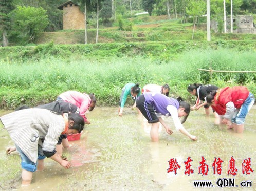 4月25日,中午課余時間,尚寨中學、尚寨小學及各村小,都積極開展支援農(nóng)戶插小秧。筆者看到,每一戶農(nóng)戶的秧田里,多的有十多個、少的七八個學生,在短短的1個小時的時間里,為農(nóng)戶插完了兩斤稻谷秧苗。為農(nóng)戶節(jié)約了寶貴的春耕育苗時間。(楊政國)