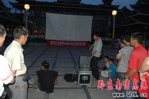 “七一”前后,黎平縣組建5支建黨90周年電影放映隊,深入到全縣的25個鄉(xiāng)鎮(zhèn)、403個村以及中小學(xué)校、廠礦企業(yè),為群眾放映《浴血奮戰(zhàn)》、《太行山上》、《八路軍》、《建國大業(yè)》等70多部優(yōu)秀題材故事片。