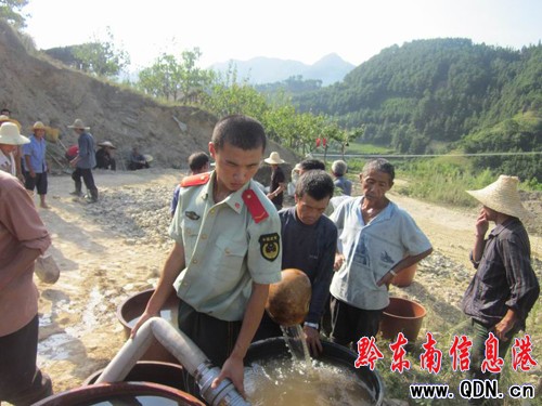 送水過程中,裝水槍、牽水帶,頂烈日,不叫苦,不叫累,親切體現了軍為民,軍民一家親的深厚情誼受到了當地群眾的連連道謝。(程渝鈞)
