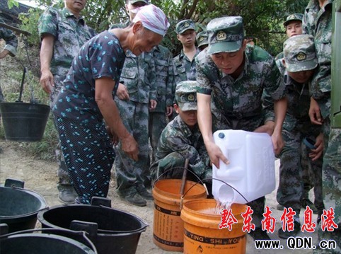 凱里市人武部官兵送水進村寨暖民心(圖)