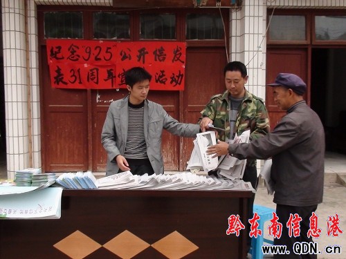 9月26日,尚寨計生部門利用趕集的日子,開展計劃生育公開信發行31周年紀念日活動。