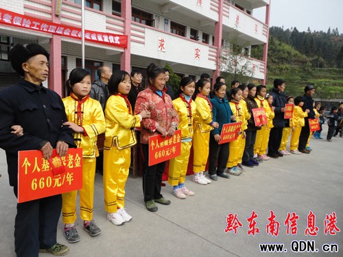 12月9日上午,錦屏縣鐘靈鄉(xiāng)在鐘靈小學(xué)舉行了城鄉(xiāng)居民社會(huì)養(yǎng)老保險(xiǎn)養(yǎng)老金首發(fā)儀式,當(dāng)?shù)?0位60周歲以上的農(nóng)民高興地領(lǐng)到了自己的養(yǎng)老金,成為我鄉(xiāng)首批城鄉(xiāng)居民社會(huì)養(yǎng)老保險(xiǎn)養(yǎng)老金惠農(nóng)政策的見(jiàn)證人。錦屏縣社局副局長(zhǎng)龍本林,我鄉(xiāng)領(lǐng)導(dǎo)全部出席了儀式,為農(nóng)民代表頒發(fā)了養(yǎng)老金。