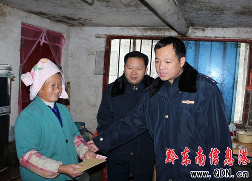 在2012年新春佳節(jié)來臨之際,1月6日,雷山縣工商局黨組書記、局長隆曉明一行冒著嚴(yán)寒到幫扶的丹江鎮(zhèn)烏開村5戶困難黨員和群眾進(jìn)行了走訪慰問,為他們送去了糧油、慰問金和新春的祝福。