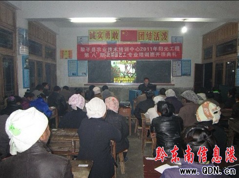 2011年隆冬的12月25—31日,黎平縣農業技術培訓中心在“天下第一侗寨”的肇興鄉廈格上寨村舉辦兩期“陽光工程”蔬菜園藝工專業培訓班,120位侗家男女勞動力冒著嚴寒參加了為期7天的優質蔬菜種植與栽培技術培訓。