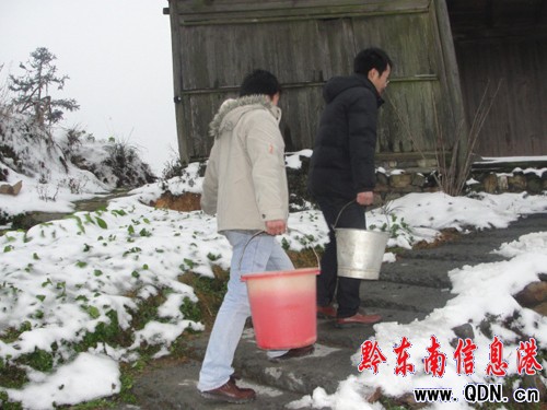 近日,有“錦屏西藏”之稱的平秋氣溫驟降,大雪紛飛,地面凝凍,水管結冰。喝水難成為了留守老弱病殘和孤寡老人日常生活的重大問題。平秋鎮的年輕干部自發組成一支擔水救援隊,上演了雪中送炭的精彩一幕。
