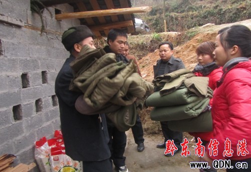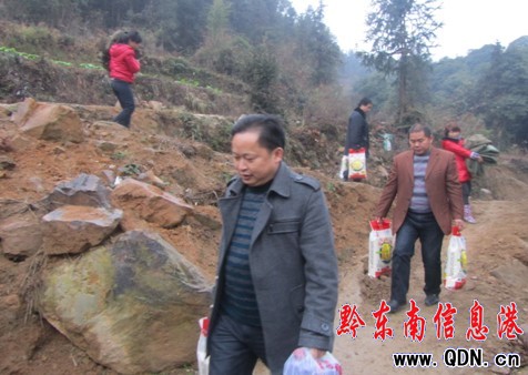 寒冬的細雨飄落,但家住在中洞村的王妹家里卻是暖意融融。劉輔平書記一行送來了新春祝福和慰問。王妹是一名弱智婦女,其丈夫年近7旬,膝下有一個智障兒子,生活自理困難。今年年初,在危房改造中,鄉里為其修建了60平米的住房。走進為她新修的家,劉輔平書記關切的噓寒問暖,與他們聊家常,深入了解其生活狀況,勉勵他們在村兩委班子的帶領下積極投入生產勞動,克服眼前困難,盡早走上富裕道路,并為其送去 大米、食用油、棉被、衣服等生活物資。