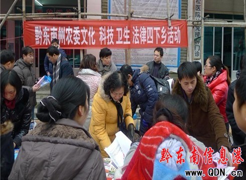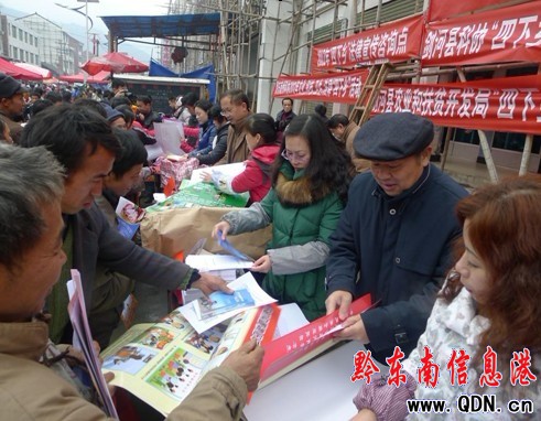 1月13日,黔東南州農(nóng)委在劍河縣岑松鎮(zhèn)參加了由州委宣傳部組織的文化、科技、衛(wèi)生、法律“四下鄉(xiāng)”活動(dòng)。此次活動(dòng),由州農(nóng)委黨組成員、紀(jì)檢組長范福東帶隊(duì),州農(nóng)委政策法規(guī)和宣傳科、農(nóng)業(yè)綜合執(zhí)法支隊(duì)、農(nóng)機(jī)安全監(jiān)理所、農(nóng)機(jī)推廣站、農(nóng)業(yè)技術(shù)推廣站、經(jīng)作站、畜牧技術(shù)推廣站、動(dòng)物疫控中心、科教站等10余名農(nóng)業(yè)科技人員參加,此次活動(dòng)通過制作宣傳板現(xiàn)場(chǎng)向農(nóng)民朋友講解農(nóng)業(yè)種植、養(yǎng)殖實(shí)用新技術(shù),真假農(nóng)資識(shí)別知識(shí),農(nóng)機(jī)補(bǔ)貼政策,法律維權(quán)知識(shí),作物和動(dòng)物病蟲害防治等農(nóng)村實(shí)用知識(shí),同時(shí)發(fā)放農(nóng)村實(shí)用技術(shù)宣傳資料4000余份,接待群眾咨詢1000余人,深受廣大農(nóng)民朋友的一致好評(píng)。此次“四下鄉(xiāng)”活動(dòng)給農(nóng)民朋友帶去了豐富實(shí)用的科技知識(shí)和法律維權(quán)意識(shí),把服務(wù)和關(guān)愛真正送到了群眾家門口,讓農(nóng)民朋友得到更多的實(shí)惠。(張乘源)