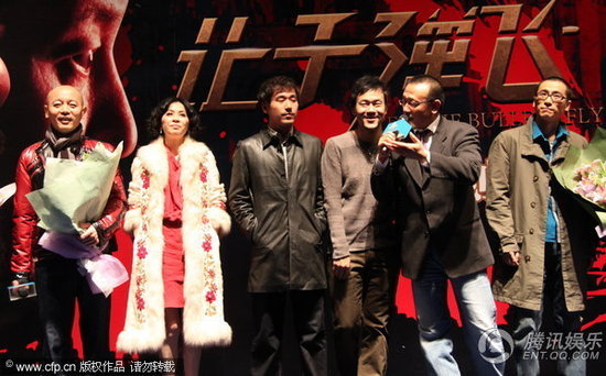 《讓子彈飛》片主要競爭對手《非誠勿擾2》的導演馮小剛也有欣賞首映,當全場觀眾拍爛手掌之際,未知他是否深感壓力,顯得神色凝重,似抹了一把汗。《讓子彈飛》片已鐵定于本月16日在內地上映,而香港的上映日期則是下月13日。
