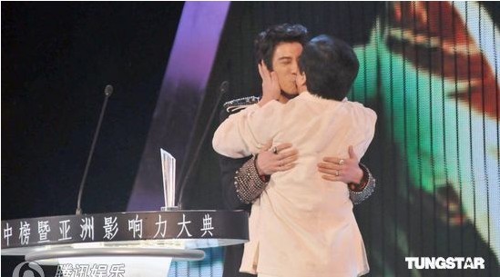王力宏開心從成龍手中拿下“最佳新晉導(dǎo)演”|獎,與成龍激動相擁相吻,第一次與男生“親親”,力宏笑說因為太開心從成龍大哥拿到新銳導(dǎo)演獎,這獎對我意義重大!王力宏昨晚開心從成龍大哥手中接下最佳新晉導(dǎo)演獎,因兩人演出電影《大兵小將》,情同父子的好交情,讓兩人一上臺馬上激動擁吻,而且還是“嘴對嘴”,引起臺下歌迷尖叫聲連連!之前力宏與成龍大哥就曾經(jīng)在王力宏2009年北京演唱會上,來個“相見歡”親臉頰,就讓粉絲們驚叫連連,昨晚在臺上王力宏與成龍激動擁吻,力宏笑說:“這是第一次跟男生接吻阿,就給了成龍大哥了!”王力宏表示說,能同時以電影人跟音樂人的身分拿獎,而且新晉導(dǎo)演獎一生只能拿一次,更深具意義