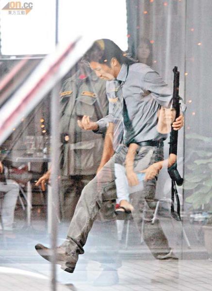 據知,這段劇情講述謝霆鋒拿著長槍掩護女主角林鵬搏命逃走,不過在拍攝時,謝霆鋒跟隨劇情掩護女主角林鵬跑至轉角位時應有人從旁給他拋出一把手槍作防衛,豈料謝霆鋒可能一時分心,伸出右手接槍一剎竟不慎弄傷手掌!工作人員見謝霆鋒傷口流血也嚇了一跳,大批人員即緊張上前察看其傷勢,霆鋒強調只是皮外傷,以紙巾止血后,隨即示意繼續拍攝,表現專業。