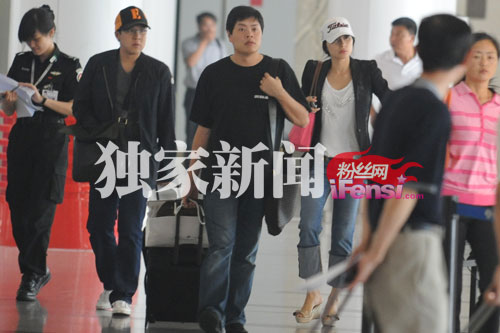 郭晶晶霍啟剛現(xiàn)身機場 戴帽遮臉玩低調(圖)