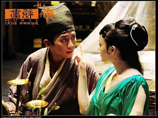 《畫壁》今日曝光的片場照片中,書生打扮的鄧超與身穿美艷紗裙的仙女孫儷打情罵俏,擺出搞怪造型,表情俏皮,十分甜蜜。據導演陳嘉上透露,“他們很喜歡孫儷在《畫壁》里的房間,特別古樸,搭配上古香古色的發型和服裝!