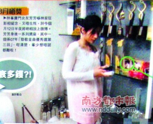 根據(jù)周刊調(diào)查所得,名叫芳芳的女子與林峰同是廈門人。在該女子的個(gè)人微博上,放有多張疑似林峰居所的相片,相片內(nèi)雖然全無林峰蹤影只有芳芳一人,但是其中一兩張相片的背景內(nèi)卻有疑似林峰的獎(jiǎng)座,其中可辨認(rèn)的有林峰于2007年獲得的“勁歌金曲優(yōu)秀選第三回”以及2009年獲得的“十大中文金曲”獎(jiǎng)。另外,該女子也有與林峰的愛狗“咪咪”的合照。