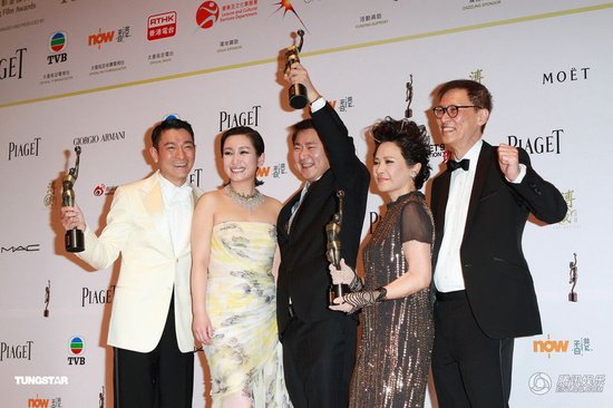 今晚金像獎最大贏家無疑是《桃姐》,這也是今年華語電影的唯一優秀代表,葉德嫻勇奪包括威尼斯電影節在內的五個影后大獎。而今晚的頒獎禮上,自從陳淑賢突破重圍奪得最佳編劇獎之后,這部制作成本僅千萬的小成本電影就意氣風發,一路高歌猛進拿下最佳導演、最佳影片等大獎。劉德華勇奪影帝算是小爆冷,之前的大熱門本來是出演了《奪命金》的劉青云,劉德華發表獲獎感言的時候也稱這個獎大概是為了獎勵自己“對香港電影的貢獻”。