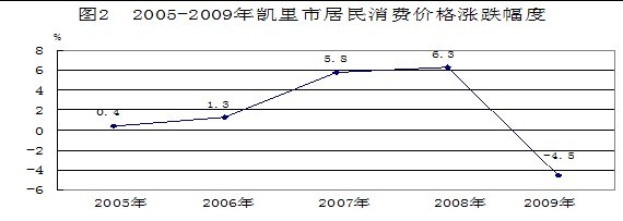 據凱里市城市物價抽樣調查,居民消費價格比上年下降4.5%。其中,消費品價格下降5.3%,服務項目價格下降2.0%。在居民消費價格中,食品價格下降4.6%,居住價格下降5.4%,醫療保健和個人用品價格下降1.3%,家庭設備用品及維修服務價格下降1.1%,娛樂教育文化用品及服務價格下降2.5%,交通和通訊價格下降2.1%,衣著價格下降12.3%,煙酒及用品價格上漲0.1%。