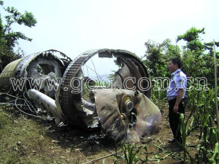 就在記者準備撤離現場的時候,當地村民說在坡上的田地里還有“東西”,記者一行趕上去,發現了一酷似飛機機翼的部件。